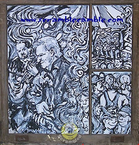 This canvas was stretched behind a window frame giving it a very unique look.