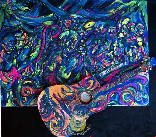 Set II. Piece has actual guitar attached to canvas.